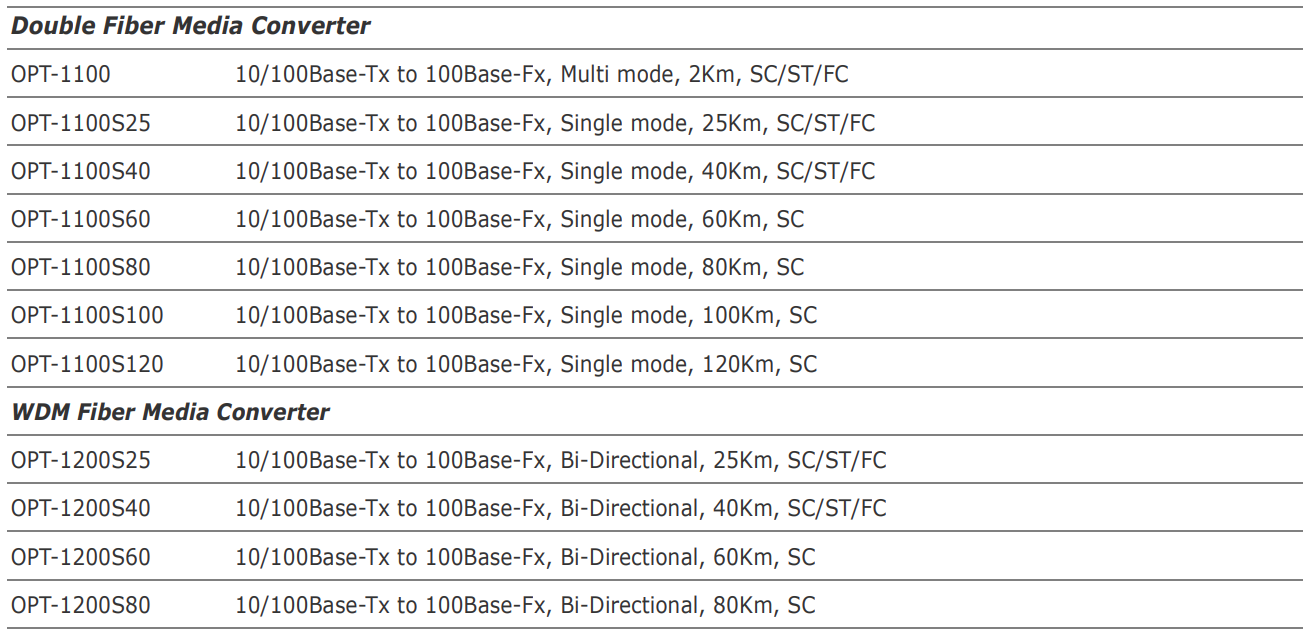- Tốc độ 10/100Mbps( LX, WDM).