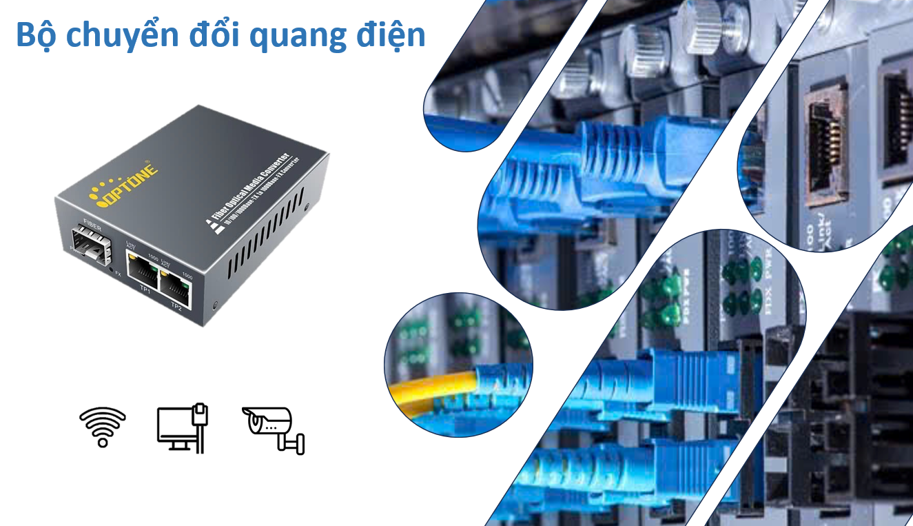 Bộ chuyển đổi quang điện là một thiết bị nhỏ với 2 giao diện truyền dẫn là: cáp đồng và cáp quang, nó nhận tín hiệu từ môi trường truyền dẫn này (đồng/quang), chuyển và truyền sang môi trường truyền dẫn kia (quang/đồng).
