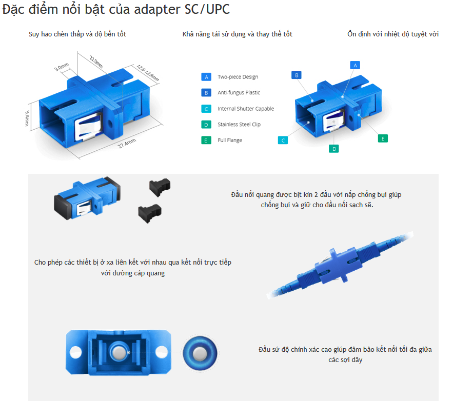 - Suy hao tiếp xúc(IL): PC≤0.3dB; UPC≤0.2dB; APC≤0.2dB.