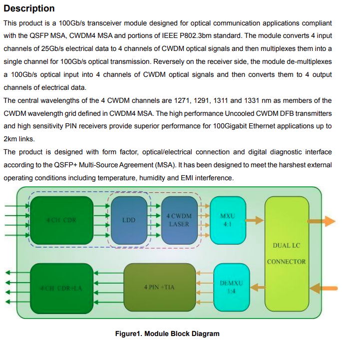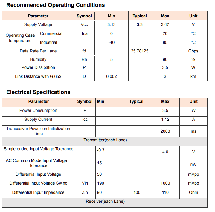Up to reach 2km for G.652 SMF[with KR4 FEC]